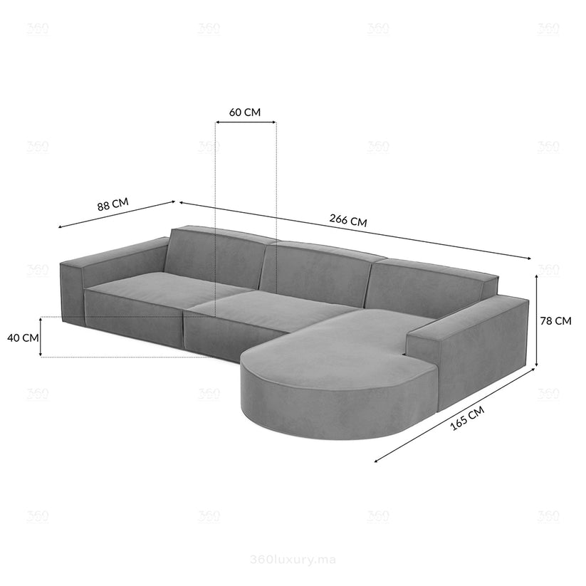 Découvrez l’élégance inégalée de la collection VICTORIA par VECTORIA STORE Maroc, une fusion parfaite entre design contemporain, confort absolu et matériaux haut de gamme. Ce canapé d’angle en velours est conçu pour sublimer votre intérieur avec une touche de luxe et de modernité, tout en offrant une expérience de détente inégalée.