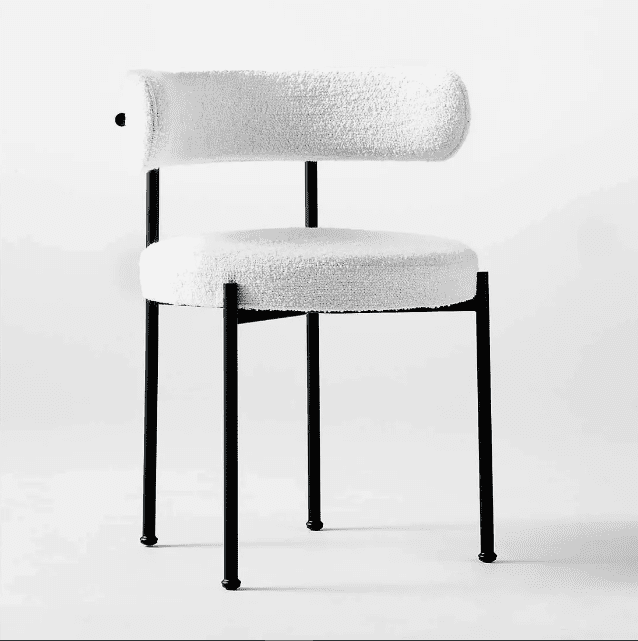 Découvrez la chaise CAIRO – une pièce design qui allie modernité et raffinement pour sublimer votre intérieur. Avec son assise en tissu bouclé blanc et ses pieds en métal noir, cette chaise apporte une touche d’élégance à votre salon, salle à manger ou bureau.