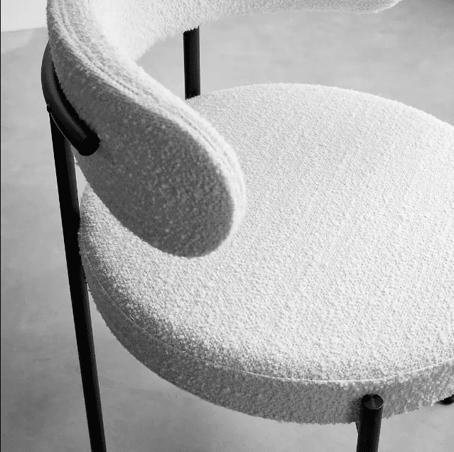 • Assise en tissu bouclé blanc – douceur et luxe intemporel.