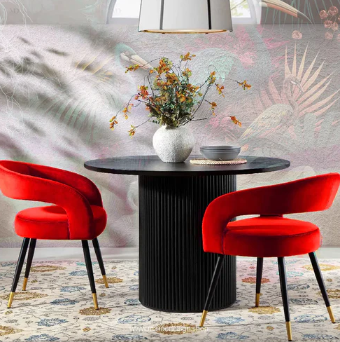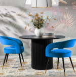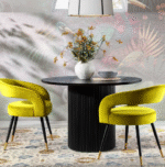 Élégance intemporelle et confort exceptionnel – Les chaises NOAH redéfinissent l’art de recevoir avec leur structure en métal noir mat et leur assise généreusement rembourrée en tissu bouclette ou velours.