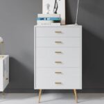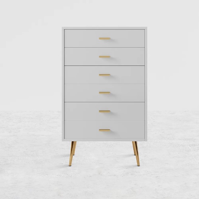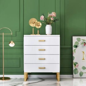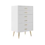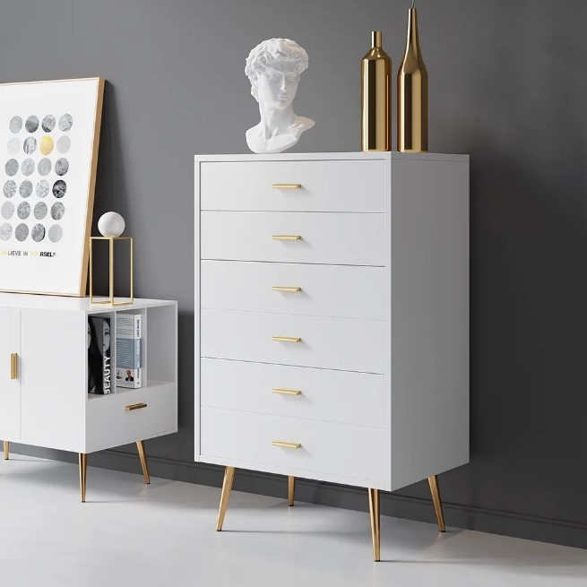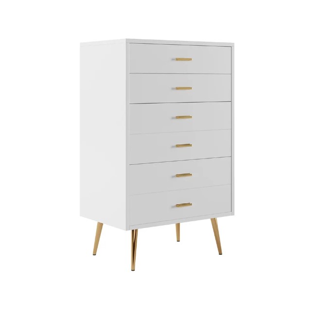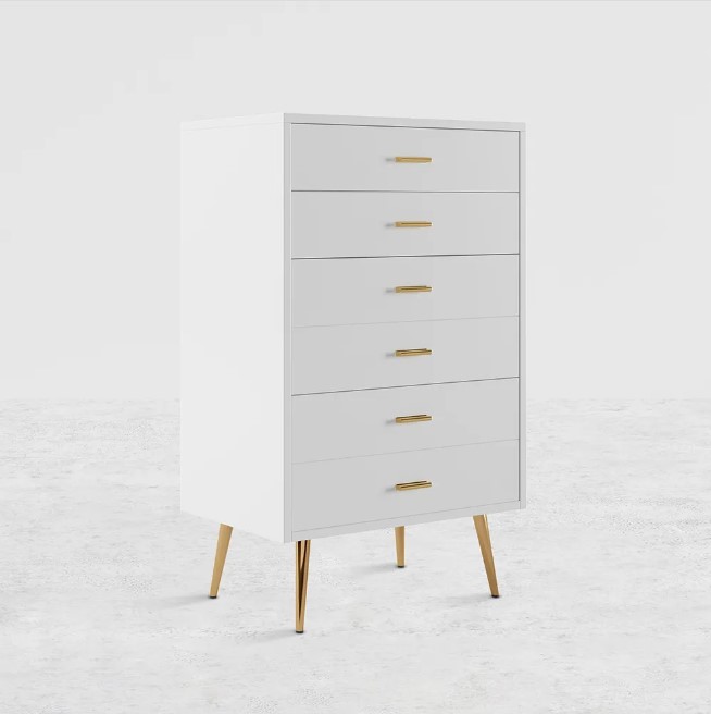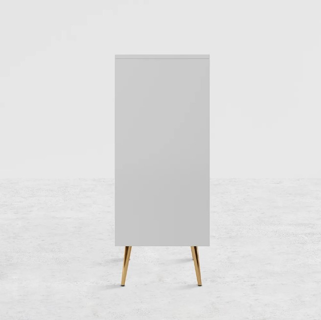 Commode moderne blanche avec pieds dorés et tiroirs
