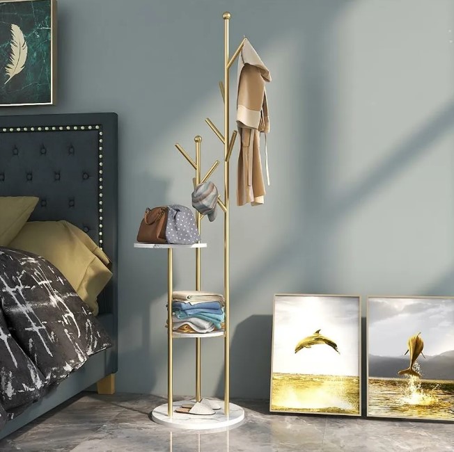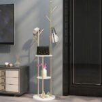 Porte-manteau debout Tree pour entrée avec étagères en or