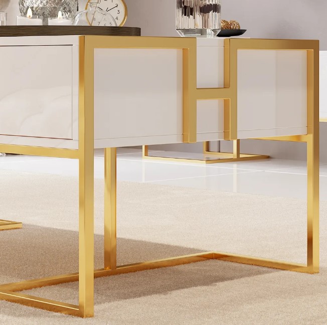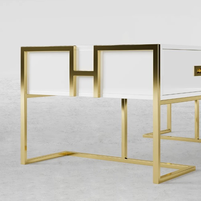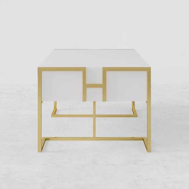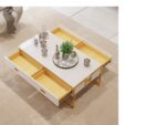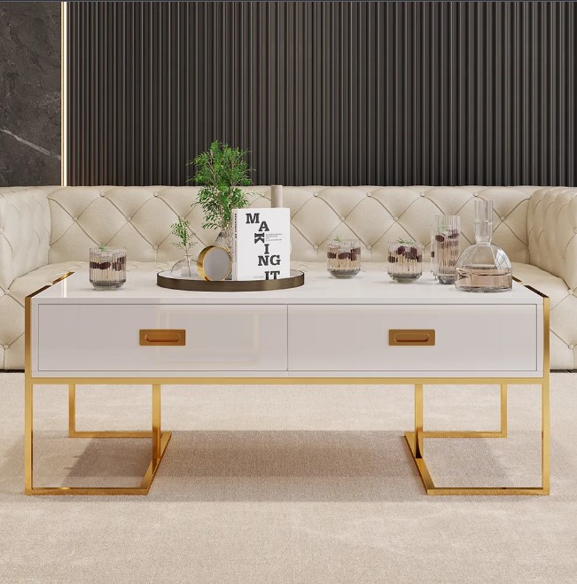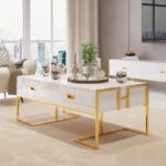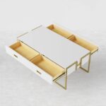 Jocise Table Basse de Rangement Contemporaine Blanche avec Tiroirs Base Or Laqué