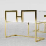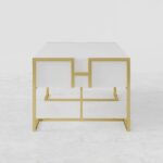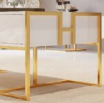 Ajoutez un intérêt visuel à votre salon avec cette table basse contemporaine. Cette table offre de nombreuses possibilités de rangement pour les livres, les télécommandes et autres objets décoratifs. Des lignes épurées et une base en acier inoxydable doré donnent une impression de sophistication. Cette table basse moderne a une forme rectangulaire élégante avec une finition dorée scintillante qui élèvera l’intérieur de la maison à un autre niveau d’attrait en noir ou blanc. Il rehausse l’apparence de votre maison tout en s’intégrant parfaitement au reste du mobilier existant
