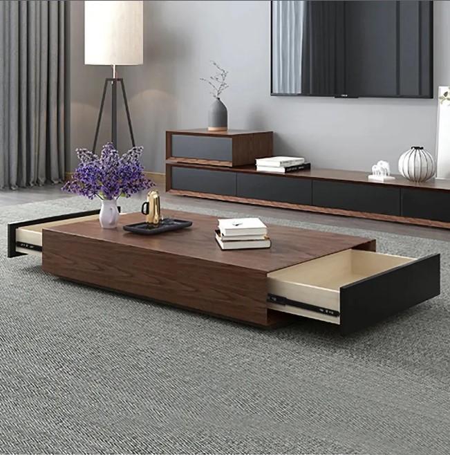 Ajoutez du piquant à votre salon avec cette table basse moderne et élégante. La table basse arbore une silhouette rectangulaire aux lignes épurées pour donner à votre décor un niveau de charme supérieur. Sinon, deux grands tiroirs offrent amplement de place pour vos objets, tandis que son plateau spacieux offre une scène spacieuse pour des bibelots décoratifs, élégants et enchanteurs. Apportez cette pièce élégante à la maison !