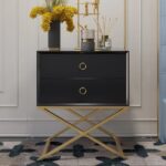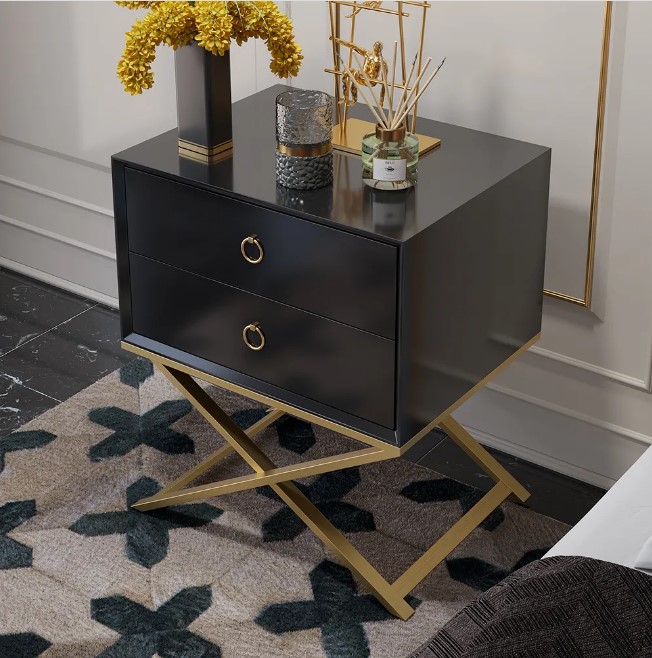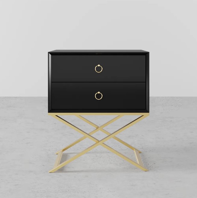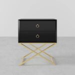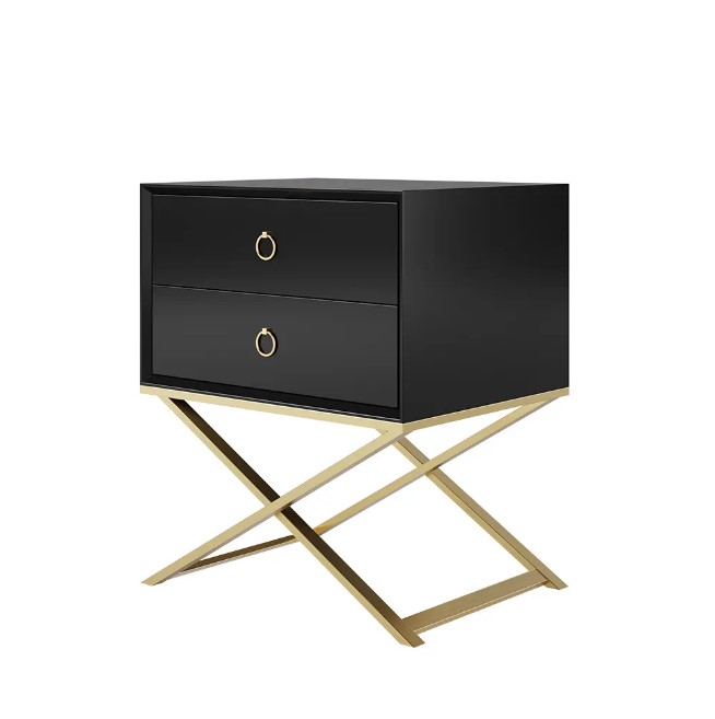 Table de chevet moderne de 500 mm avec 2 tiroirs, piédestal en forme de X