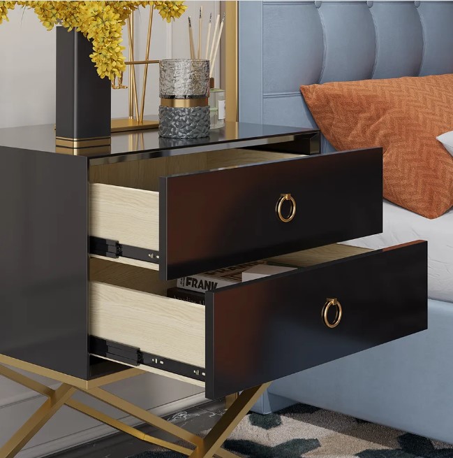 La table de chevet moderne de 500 mm est un meuble de rangement fonctionnel et élégant pour votre chambre à coucher. Avec son design épuré et son piédestal en forme de X, cette table de chevet ajoute une touche de style contemporain à votre espace de sommeil. Elle est équipée de 2 tiroirs spacieux pour ranger vos objets personnels et vous offrir une surface supplémentaire pour poser vos lampes, livres ou téléphone. Elle est fabriquée avec des matériaux durables, robustes et facile à nettoyer. Les poignées en métal et les pieds en bois massif lui donnent une finition moderne et élégante. Elle est également disponible en différentes tailles et finitions pour s’adapter à vos besoins et à votre décoration intérieure.
