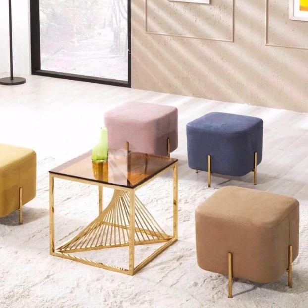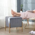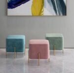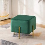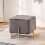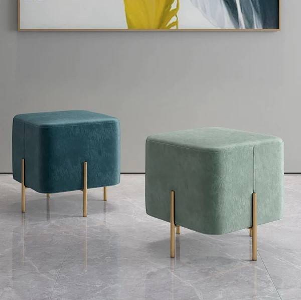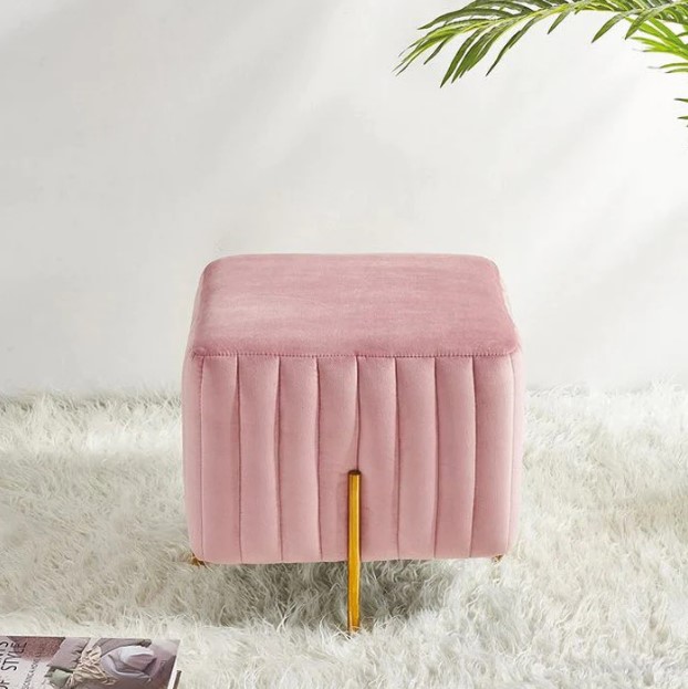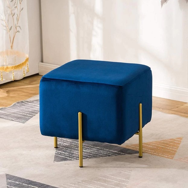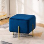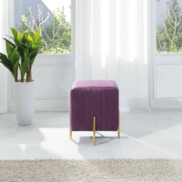 - Pouf carré en velours sur pieds en métal. Dimensions : 45 x 45 x 45 cm.